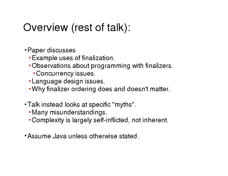 Overview (rest of talk):